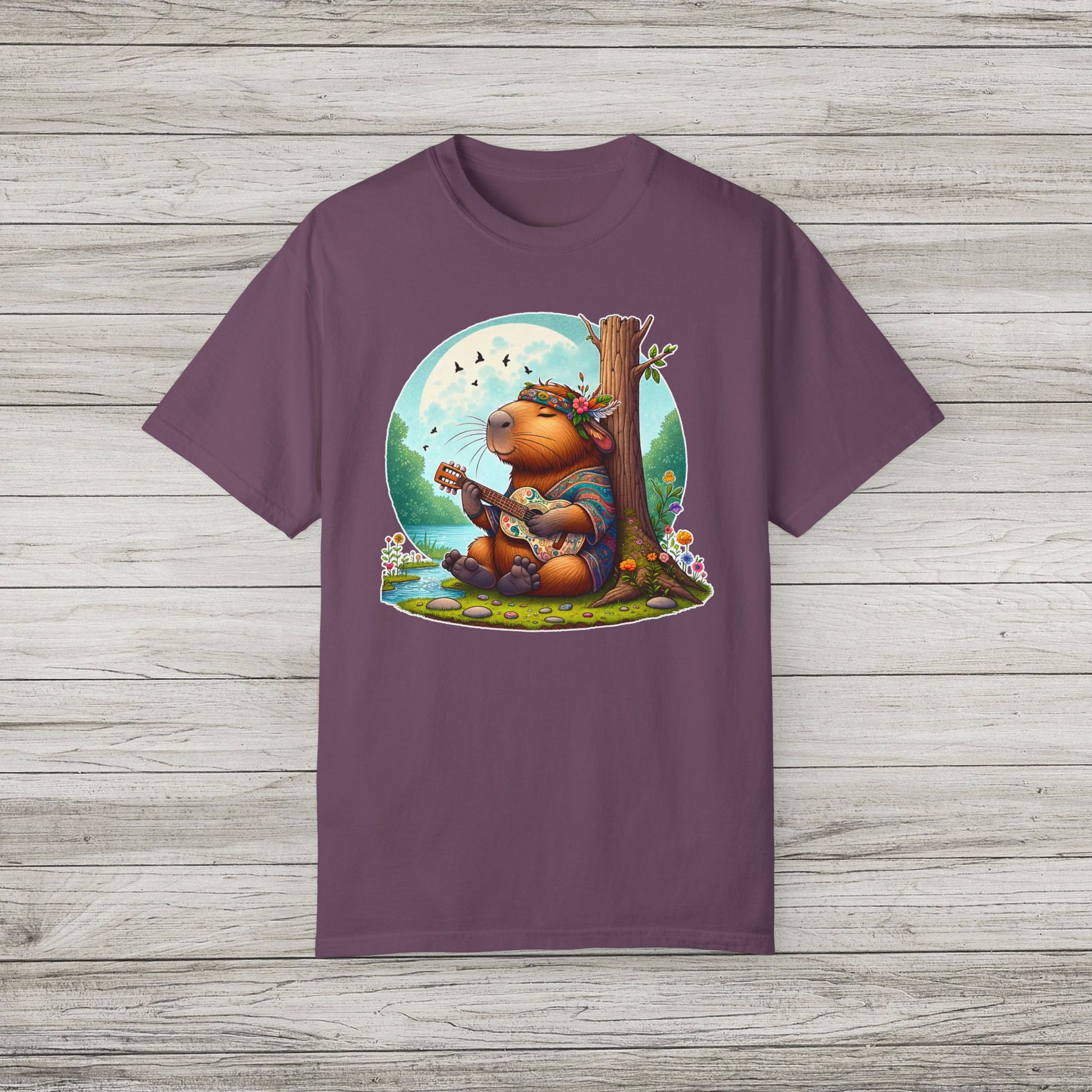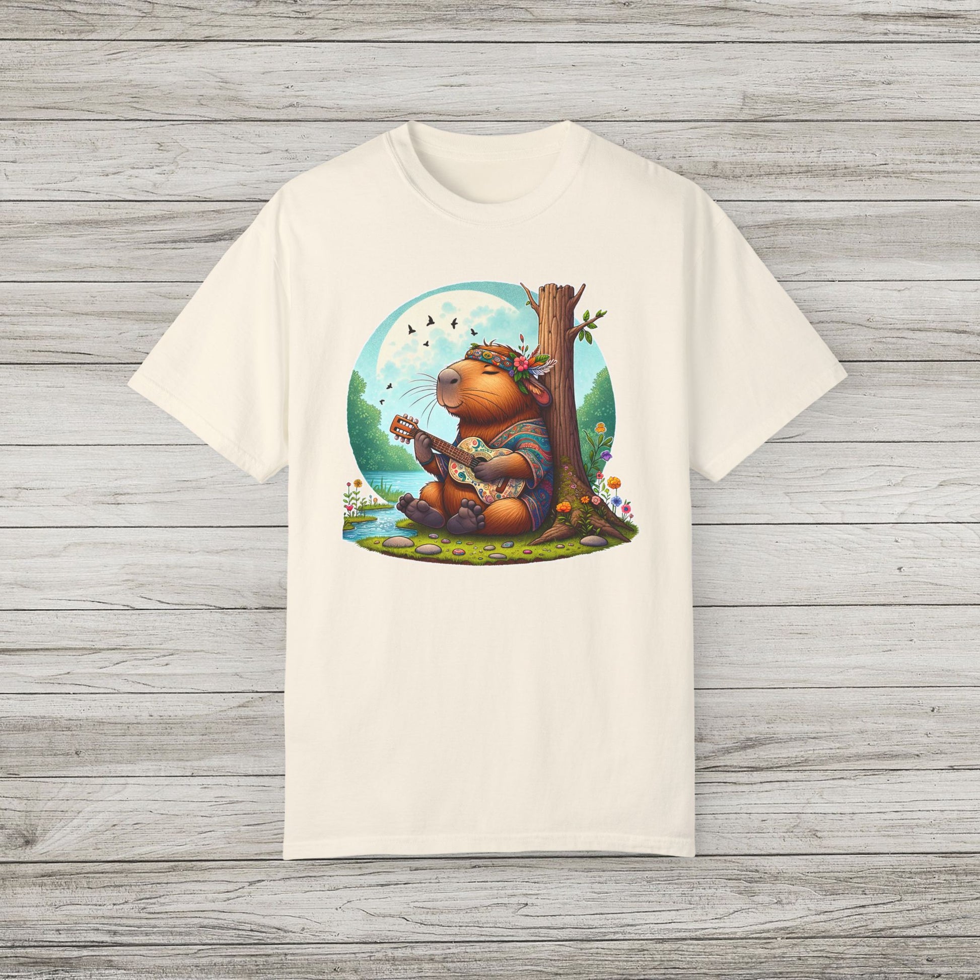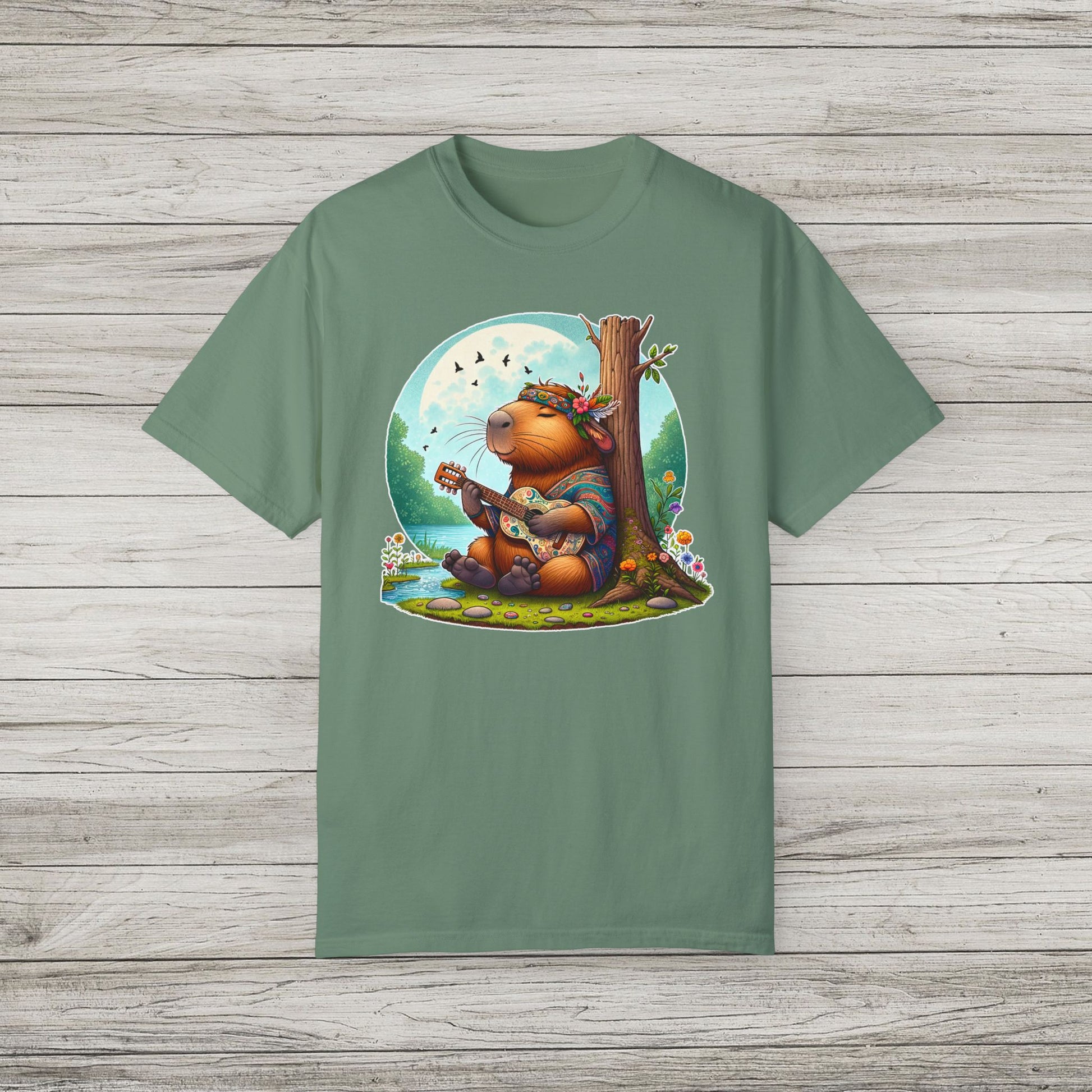 Whimsical Beaver Playing Guitar Garment-Dyed T-Shirt